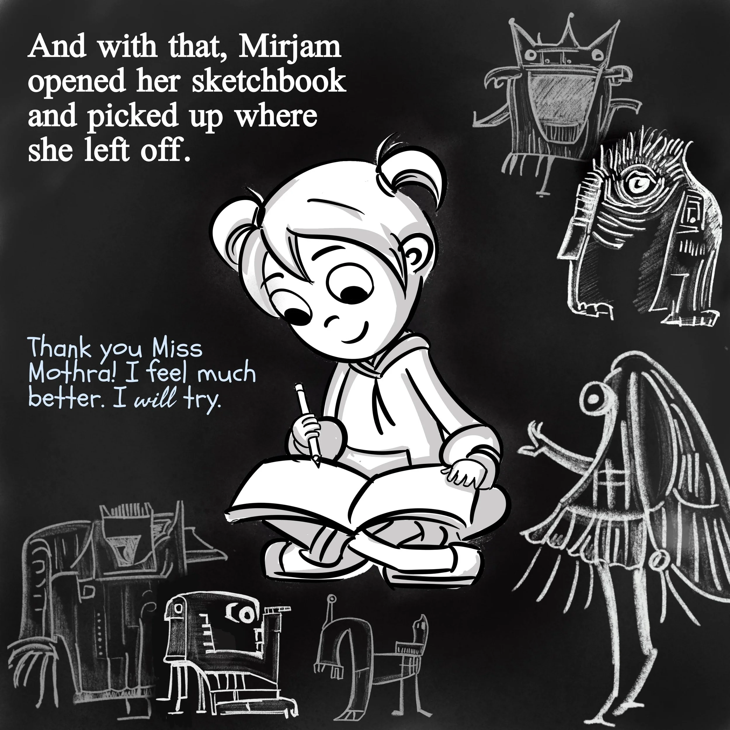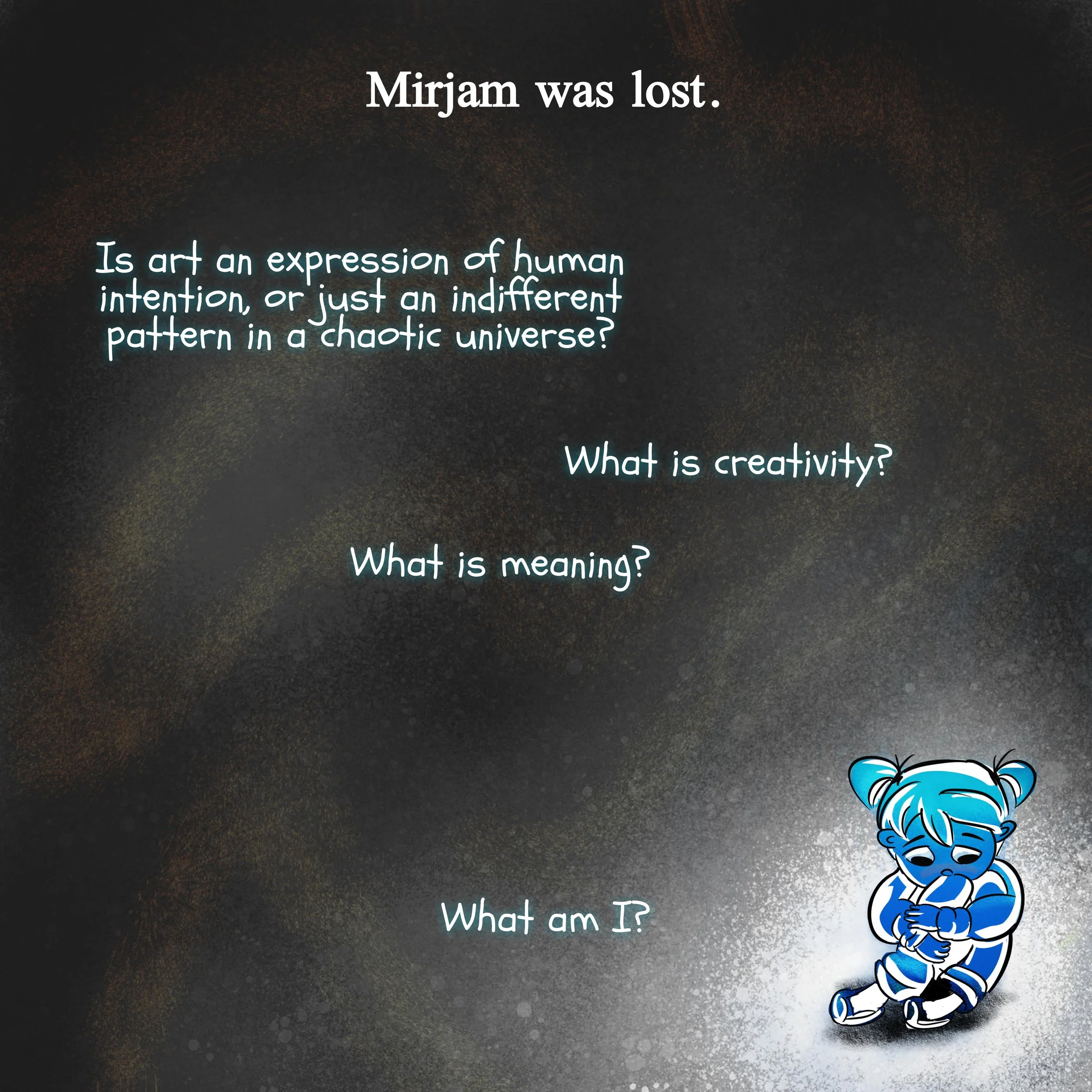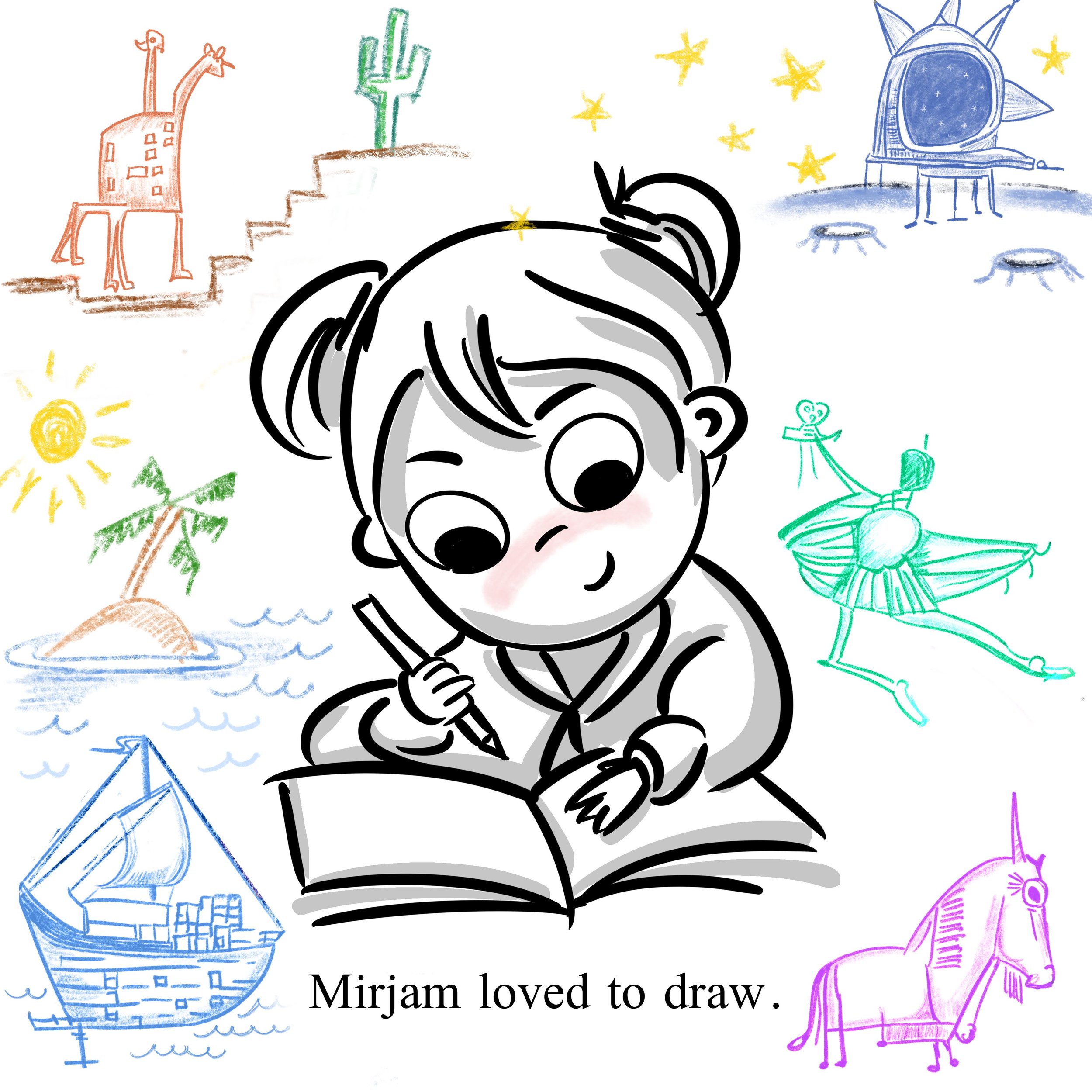 Mirjam’s Confusing Day is a children’s book I wrote and illustrated in 2022. The artwork combines hand-drawn illustration with images generated using locally run VQGAN+CLIP models.